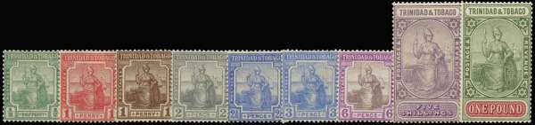 TRINIDAD AND TOBAGO SG 206/15 1921-22 SET OF 9 TO £1 LPOG