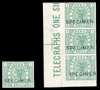 1876 1/- deep green Pl.1 (MG) and left hand marginal vertical strip of three (AF-AH) imperforate optd "SPECIMEN" type 10. large part o.g. Slight crease to margin on strip of three clear of adhesives. Otherwise fine with fresh colour. SG T8var (4)