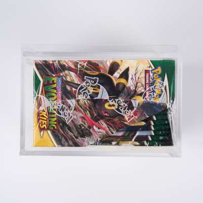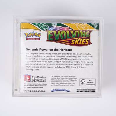 Evolving Skies was the seventh set in the mainline Sword & Shield era releasing in August 2021. This factory sealed box contains 36 sealed booster packs. The set has the highly coveted 'Moonbreon' and has quickly become one of the most expensive modern era booster boxes of the last five years.