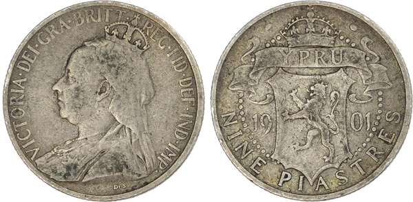 Cyprus, British Administration. Victoria AR 9 Piastres. 1901.