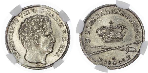 Denmark, Kingdom. Christian VIII AR 3 Rigsbankskilling. Altona mint, 1842 K/FF. Type I.