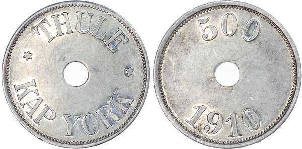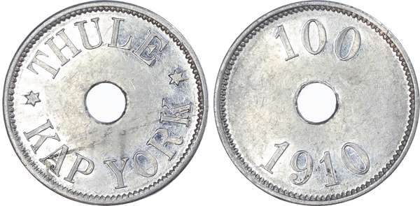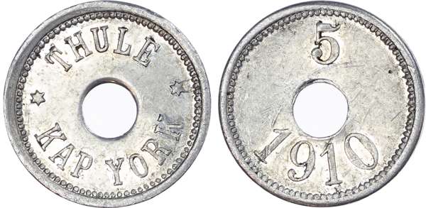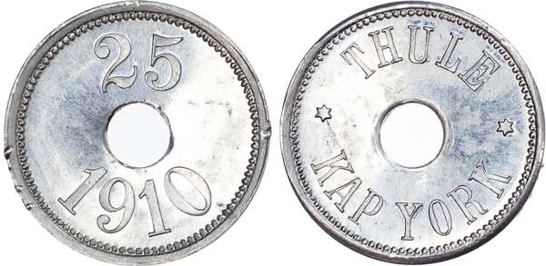 Denmark, Greenland. Thule Kap York ALU 500, 100,25 & 5 Öre token set. 1910.