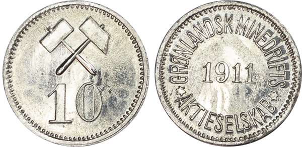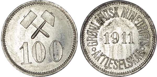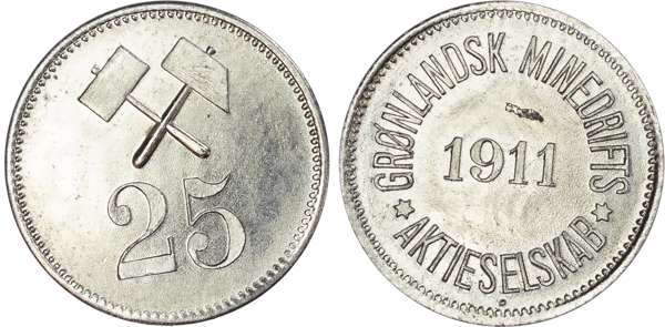 Denmark, Greenland. Greenland Mining Ltd Plated Ni 100, 25 & 10 Öre token set. 1911.