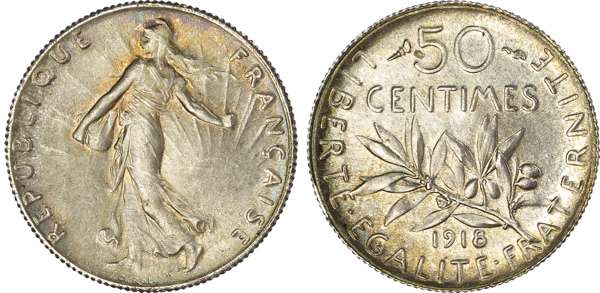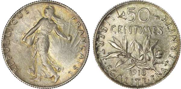 France. Third Republic AR lot of 3 x 50 Centimes. 1918.