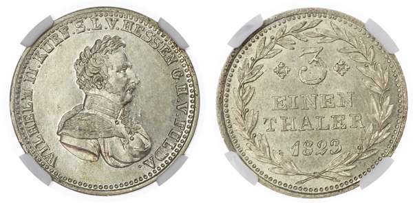German States, Hessen-Kassel. Wilhelm II AR 1/3 Thaler. 1823.
