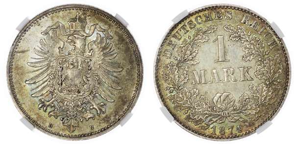 Germany, Empire. Wilhelm I AR 1 Mark. 1874H.