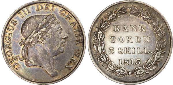 Great Britain. George III AG 3 Shillings Bank Token. 1813.