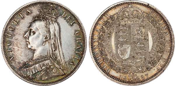 Great Britain. Victoria AG Halfcrown. 1887. Jubilee Head. VICTORIA DEI GRATIA, J.E.B. Jubilee Bust left / BRITANNIARUM REGINA FID DEF, date, HONI SOIT QUI MAL Y PENSE, shield in garter centre. S 3924. 14.14g, 32.00mm, 12h.