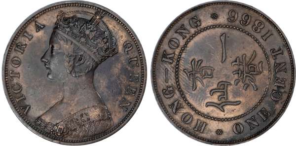 Hong Kong, British Colonial. Victoria CU 1 Cent. 1866.