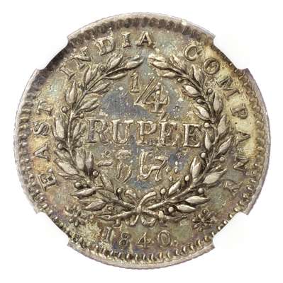 India, British Colonial. Victoria AR ¼ Rupee. 1840(B).