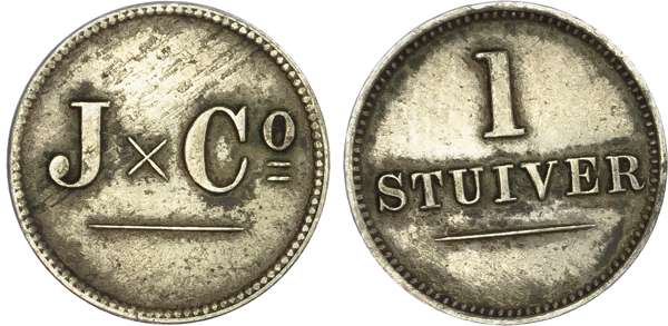 Netherlands East Indies, Curacao. Jerusun & Co. CuNi 1 Stuiver Token. Circa 1874. J &C0. - / 1 STUIVER -. KM Tn 1. 1.10g, 15.00mm, 6h.