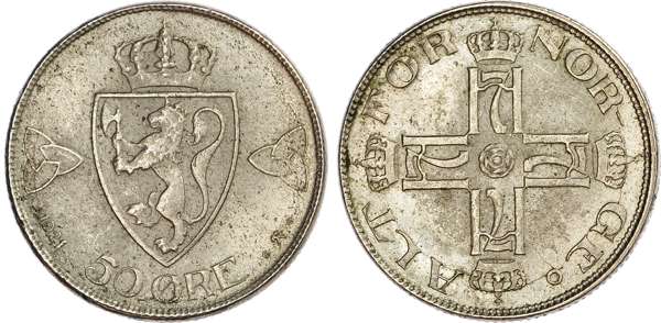 Norway. Haakon VII Cu Ni 50 Øre. 1921.
