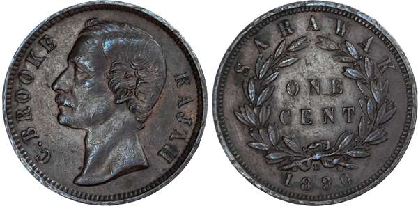 Sarawak, British Colonial. C Brooke Rajah CU 1 Cent. 1890H. C. BROOKE RAJAH around bust left / SARAWAK, ONE CENT in wreath, H below with date under ribbons. KM 6. 9.33g, 29.29mm, 12h.