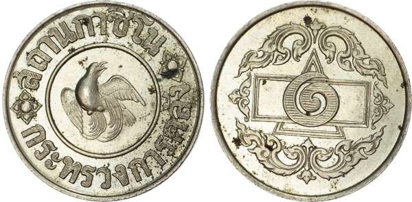 Thailand. Siam Ni 1 Baht Gaming Token. 1945. Government sponsored gambling issue. Siamese legend around bird of paradise / Symbol centre on ornate design. Siam: PG 286. 8.22g, 25.50mm, 12h.