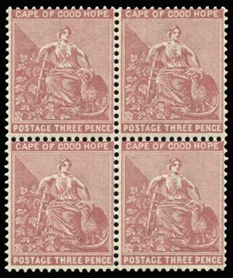 1882-83 3d pale claret, wmk CA, block of...