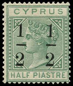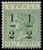 1886 (Apr) "½" on ½pi emerald-green, wmk CA, type 10 surcharge with 6mm space, fresh o.g. Trivial gum wrinkling still fine appearance.