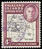 1946-49 Thick map 4d black and claret, variety ‘SOUTH POKE‘ from vignette plate ‘2‘ (R6/8), attrctively cancelled by part violet South Georgia cds. Scarce.
