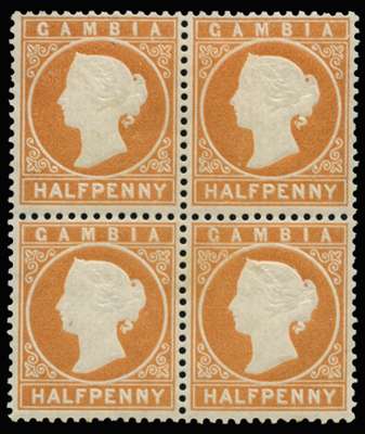 1880-81 ½d orange, wmk CC upright, comb perf (May 1881 printing), block of 4, fresh o.g. Upper left stamp with tiny gum blemish, but fine appearance.