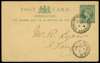 1894 (AU 4) 5c green postcard, used to Tangier, with fine "GIBRALTAR / SOUTH DISTRICT" despatch cds and Tangier arrival cds for the same date. Very fine and scarce. [N.B. The addressee, Roque Lyons, was postmaster of Tangier from 1894 to 1906. The (unsigned) message is believed to be from his father, Peter Lyons, chemist and agent at the Gibraltar South District post office.]