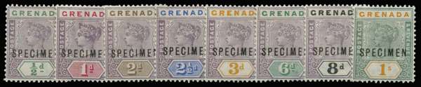 1895-99 Set of 8 to 1s, opt "SPECIMEN", part o.g. Some adhesions on gum but fine fresh appearance. (cat £180)