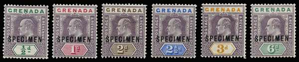 1902 Wmk CA short set of 6 to 6d, opt "SPECIMEN" and each showing constant variety "Broken M" (pos. 41 of the setting), fresh large part o.g. Couple of minor gum creases but far above average. A rare and remarkable group, with only 12 of each possible. Ex Freeland.