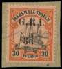 1914 Marshall Is 3d on 30pf black and orange/buff, 5mm space from setting II pos. 5, showing variety "No stop after d", tied to piece by part Rabaul oval ds in violet. Rare used, and very fine. BPA cert (1977) as former SG 55a.