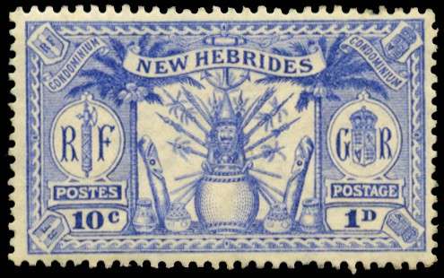 1925 1d (10c) COLOUR TRIAL in ultramarine (adopted for the 5d) on Script wmk paper, perf 14, o.g. (traces of yellowing). Rare.