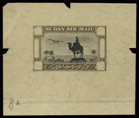1931(-37) Air, master die proof (undenominated frame) in black and sepia on "SG" wmkd paper (61x51mm), numbered "8A" in pencil at lower left. Fractionally toned, still fine and rare.