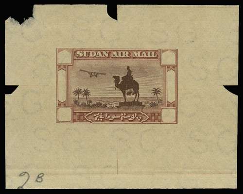 1931(-37) Air, master die proof (undenominated frame) in red-brown and red-brown on "SG" wmkd paper (64x50mm), numbered "2B" in pencil at lower left. Fractionally toned, still fine and rare.
