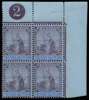 1904-07 2½d purple and blue/blue, wmk MCA, upper right corner plate number "2" block of 4 , very fine o.g. (stamps unmounted). Very scarce in this positional form.