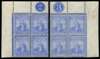 1904-07 2½d blue, two plate blocks of 4,...