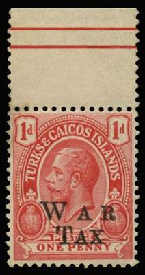 1919 War Tax 1d scarlet, type 42 "WAR/TAX" opt, ERROR OPT DOUBLE (close separation), top marginal, fresh o.g. (minor gum soaks at top). Clear BPA cert (2004). (cat £150+)