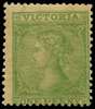 1867-70 Emergency printings 1d pale yellow-green "Laureate", wmk double-lined "1" numeral (Perkins Bacon Tasmania paper), large part o.g. Typical centring and gum browning, but good colour and above average. Scarce in unused condition. (cat £140).