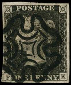 1840 1d Greyish-Black Pl.7. Very fine used four margin example lettered FK, neatly cancelled by a crisply struck black MC. Spec. AS45.