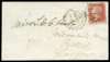 1857 1d Pale red Pl.47. Very fine used example lettered GK neatly tied to an uncreased envelope by a Cheltenham "177" type IIA (1st recut) sideways duplex for NO.1.1857. Addressed to Partick with Glasgow and Partick blue receiving cds's on reverse for the following day. Spec. C10(2).