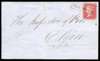 1859 1d Rose-red Pl.60. Very fine wrapper sent from Lhanbryde to Elgin bearing a 1d rose-red Pl.60 (SG 40) lettered DK, neatly tied by a crisp black, boxed "LHANBRYDE" Scots local cancellation (Type IX). Backstamped by an Elgin arrival cds for AU.18.1859. Light vertical crease at right of adhesive nevertheless an attractive wrapper. Alcock scarcity rating E. Ex. "Claymore".