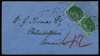 1862 Transatlantic mail. Very fine double rate cover prepaid by a vertical pair of 1s Deep Green (Pl.1=2) lettered SF-TF. Neatly tied to a clean unfolded blue envelope by crisp Bath '53' duplexes for FE.09.1864 with a red US arrival cds alongside for FE.26.1864, a red handstruck "48" and a red manuscript "42" indicating the British share of the postage for overseas carriage. Addressed to Philadelphia and backstamped in London for FE.10.1864. Superb deep colour, a very fine quality cover.