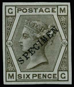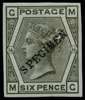 1874 6d Grey Pl.16. Very fine and fresh unused o.g. imperforate example lettered MG, overprinted "SPECIMEN" type 9 diagonally. Spec. J86s