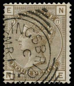 1880 4d Grey-brown Pl.17. Very fine used example lettered NE, cancelled by a Kingsbridge squared circle datestamp for MR.1.