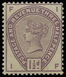 1884 1 1/2d Colour trial. Very fine unused o.g. perforated example lettered IF, printed in purple on grey, gummed, unwatermarked paper.