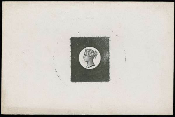 1884 Small head die proof. Very fine small head die proof with white background upon a square hatched surround printed in black on white glazed (92 x 60mm). Scarce. Ex. DLR Archive Sale & "Aureum".