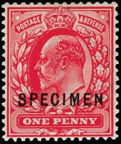 1902 1d Bright scarlet. Very fine unused o.g. example printed by DLR, overprinted "SPECIMEN" type 22. Spec. M5(2)w. Ex. "Minoru".