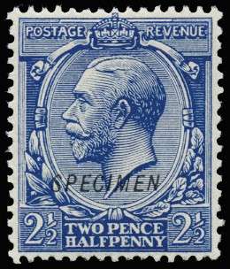 1912 2 1/2d Cobalt-blue. Very fine unused o.g. example overprinted "SPECIMEN" type 23. Spec. N21t.