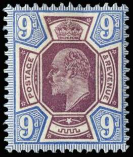 1912 9d Slate purple & cobalt blue (F). Very fine unused o.g. example printed at Somerset House. Spec. M41(4).