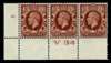 1934 1½d Red-brown (Large Format). Very fine unused o.g. V34 cylinder 42 (Dot) control strip of three, perf type 2A(P/P). Showing variety "Frame break under second E of PENCE" in position R20/3 (U/M). Spec. N51(d).