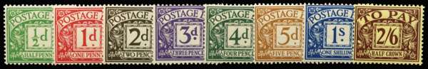 1936-37 ½d-2s6d Postage dues. Very fine unmounted o.g. set of eight.