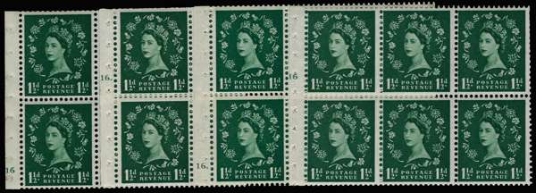 1962 1½d Green (Wmk. Crowns). Very fine unmounted o.g. set of 4 booklet panes of six showing all "dot" and "no dot" combinations for cylinder numbers G16 & G16(T). A few clipped perfs on each pane nevertheless a very presentable set. Spec. SB66. Cat. £520.