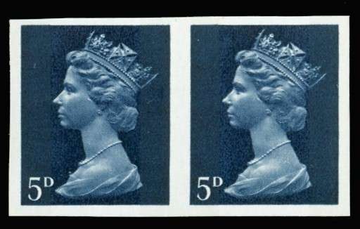 1968 5d Royal blue (2 bands). Very fine unmounted o.g. horizontal imperforate pair. Scarce. Spec. U17a.