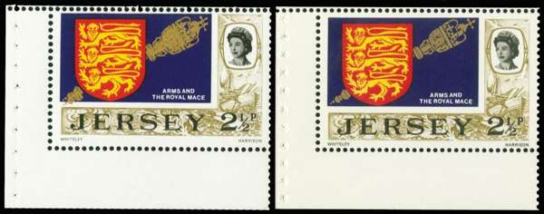 1971 2½p "Royal Mace" booklet pane. Very fine unmounted o.g. example with gold (Mace) printed double. Scarce, offered with a normal example for comparison.