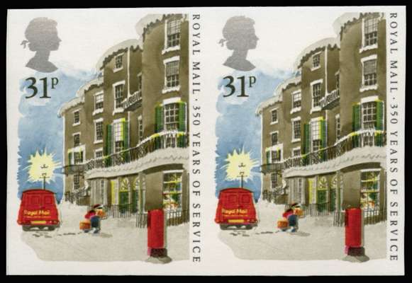 1985 31p Royal Mail (Parcel delivery). Very fine unmounted o.g. imperforate horizontal pair, a couple of tiny paper wrinkles as often seen. Rare, only 12 pairs recorded. Cat. £3500